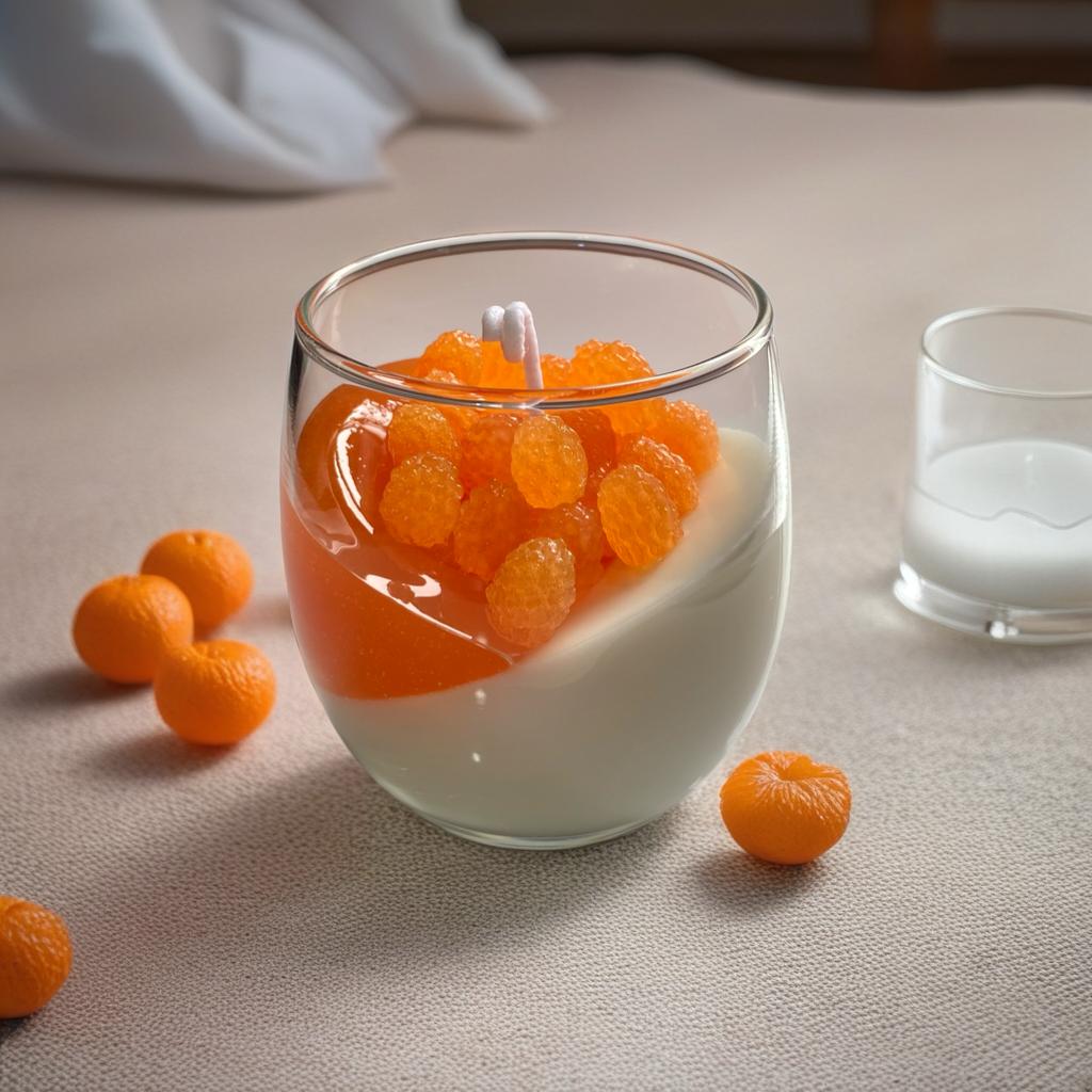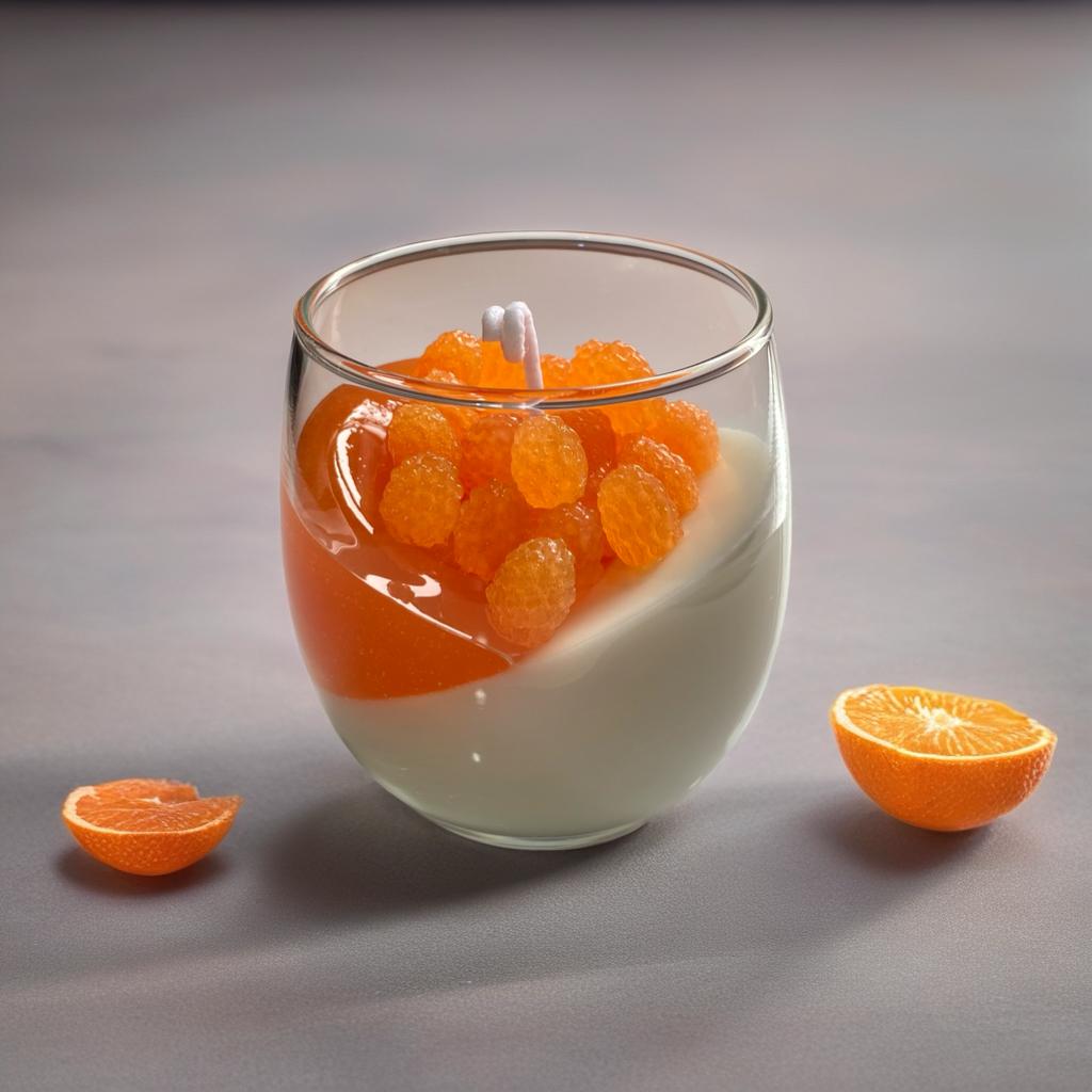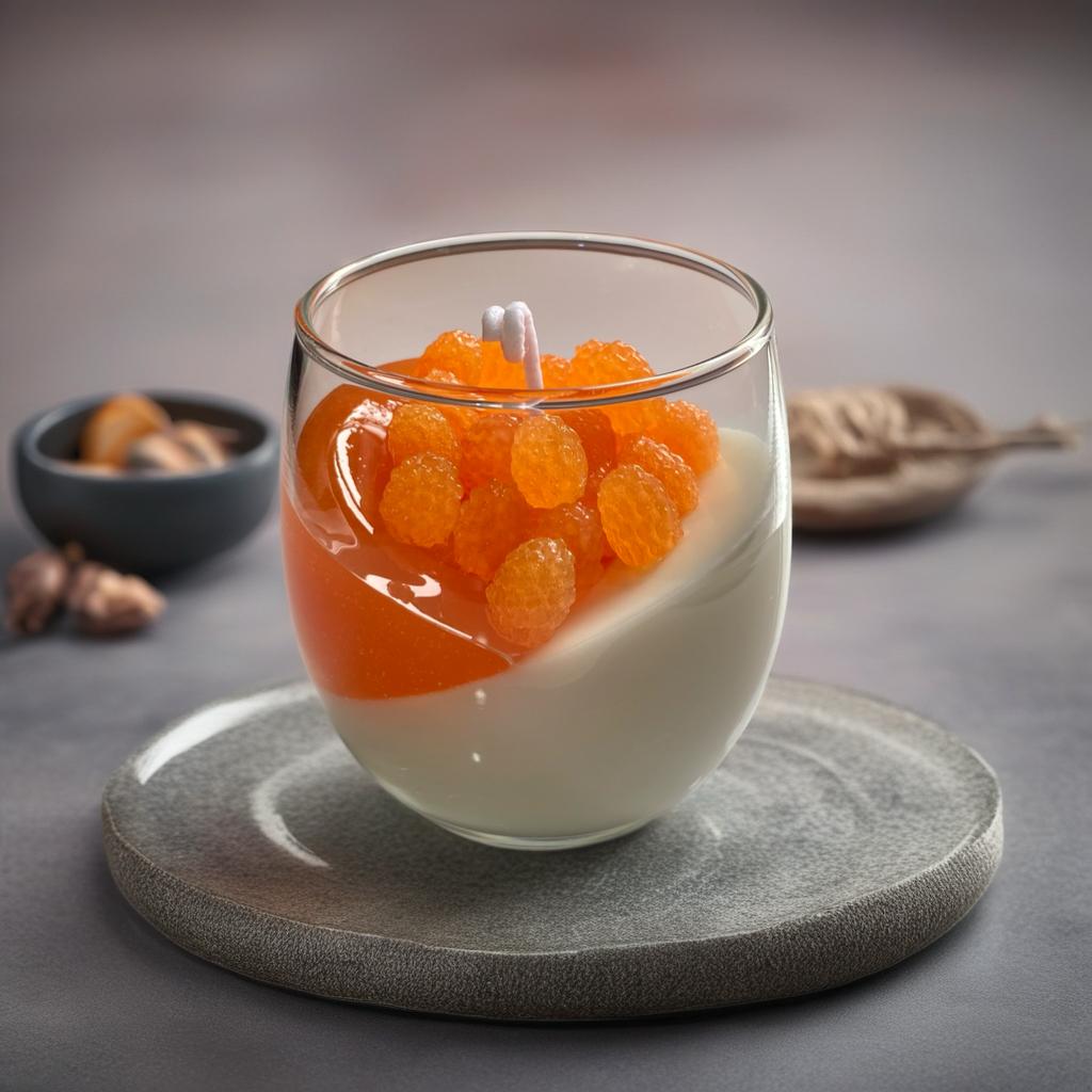 Vela artesanal de cera presentada en vaso de vidrio con diseño inclinado. Su superficie en tonos ámbar con textura segmentada añade un toque moderno y distintivo, ideal para decorar espacios con estilo cálido y contemporáneo. Perfecta para regalar o complementar una mesa, repisa o rincón especial.