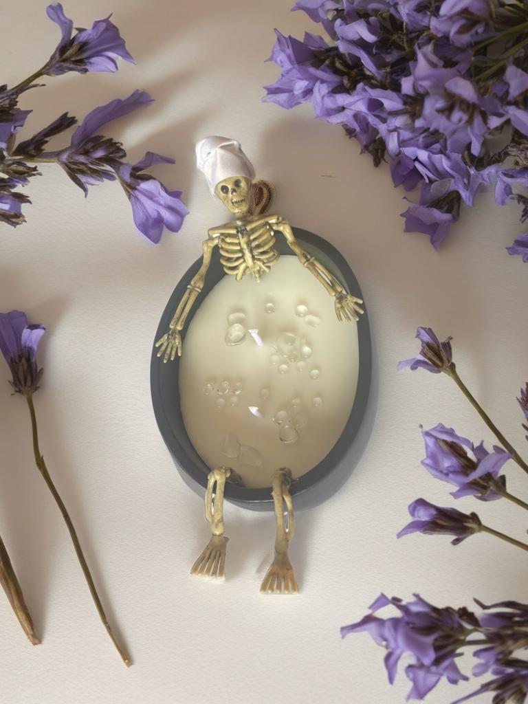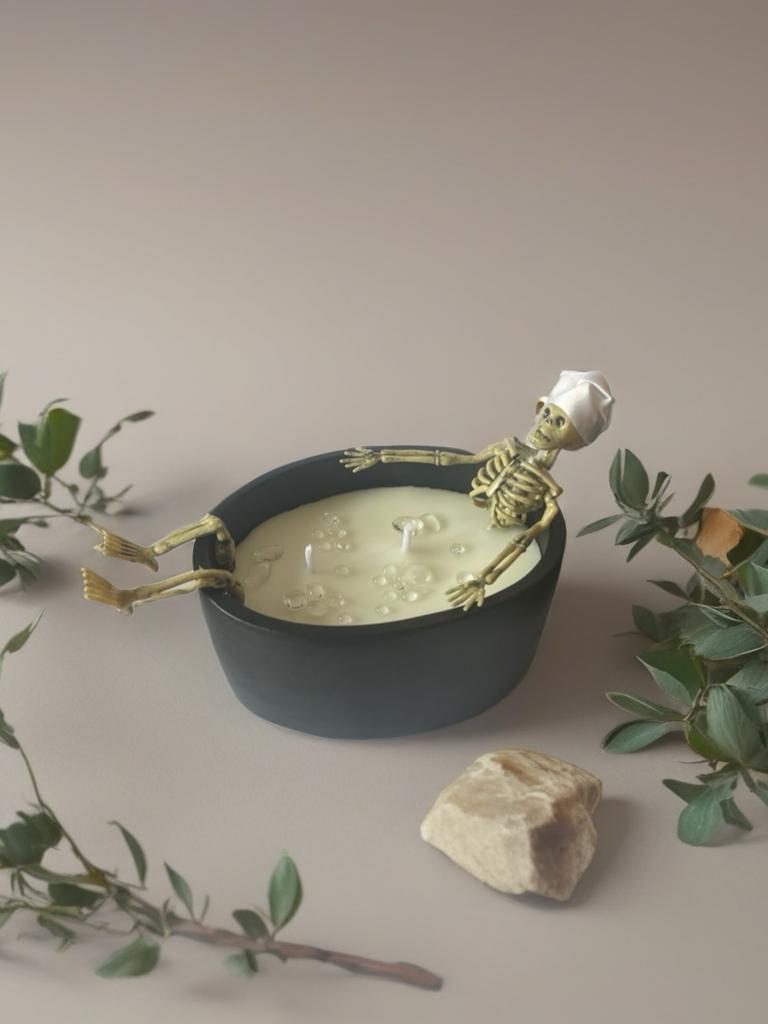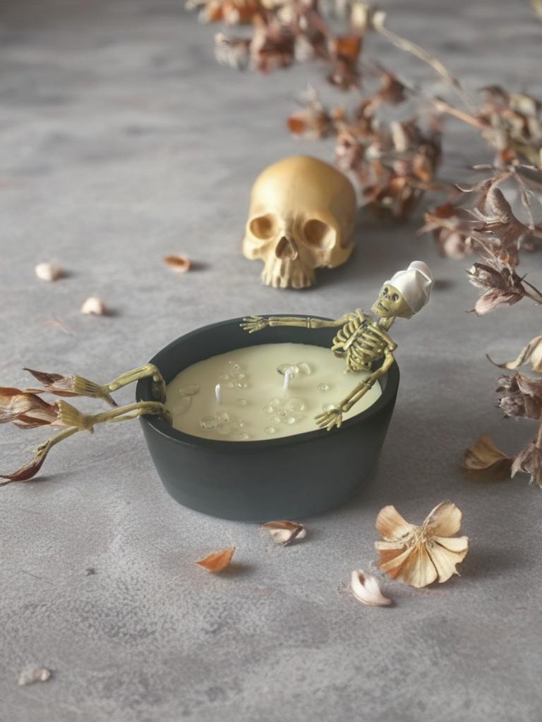 La Vela Caldero Esquelético combina lo enigmático y lo creativo en una sola pieza. Fundida directamente en un pequeño caldero, esta vela aromatizada crea un ambiente acogedor y misterioso, acompañada de un simpático esqueleto que la hace única y perfecta para la temporada.