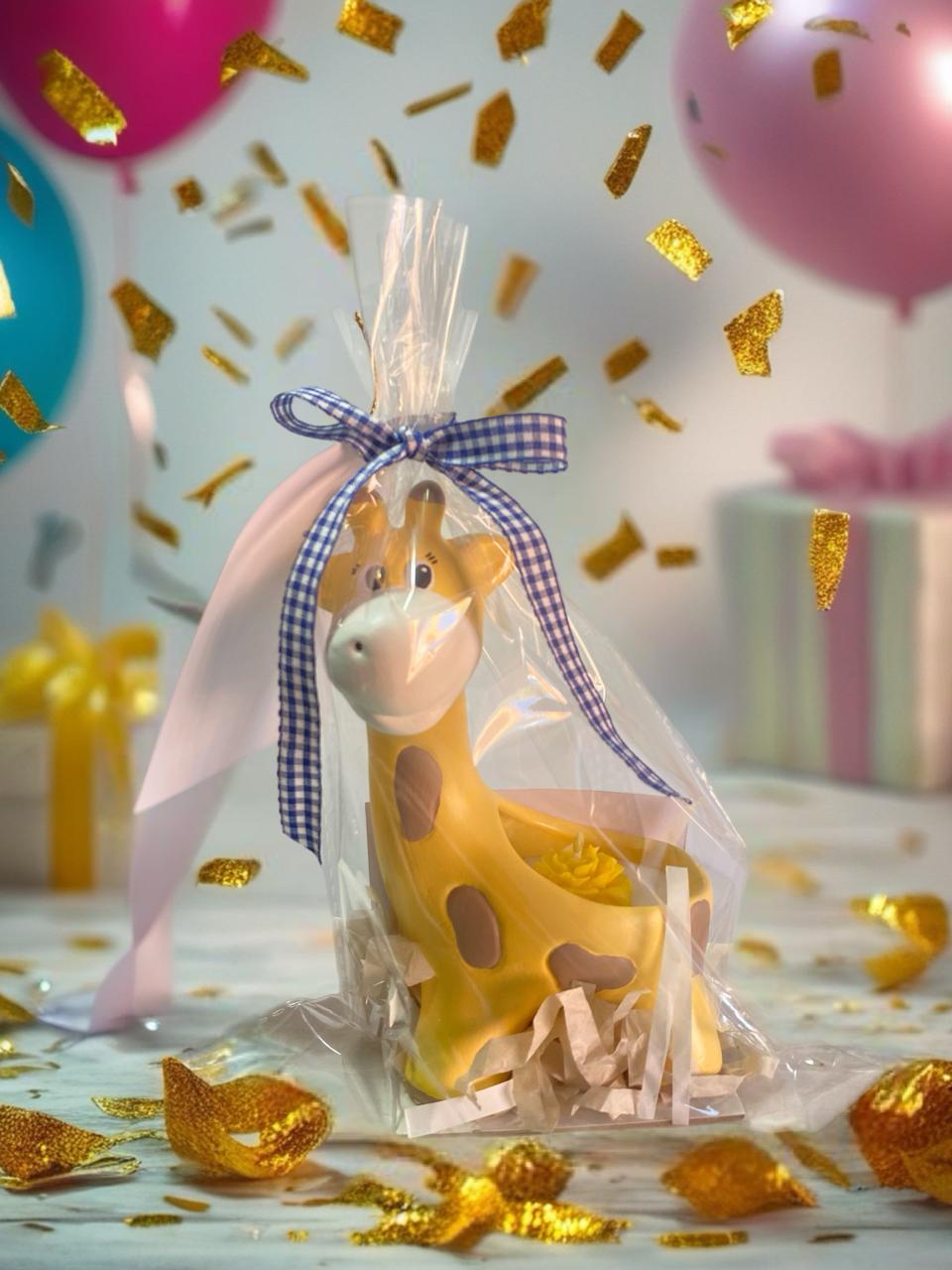 Llena tus celebraciones de ternura con nuestra Vela Jirafa de Ensueño, una pieza artesanal elaborada en cerámica y acompañada de una delicada vela de cera de palma natural con suave fragancia. Su diseño alegre y encantador la convierte en el detalle perfecto para recordatorios de baby showers, bautizos, cumpleaños o nacimientos.